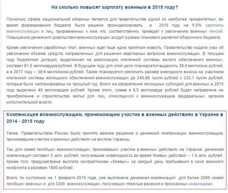 — Также, правительством России было принято важное решение о денежной компенсации военнослужащим, принимавшим участие в военных действиях на востоке Украины, – сказано в материале.