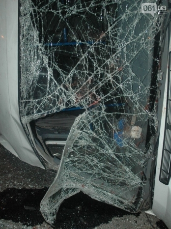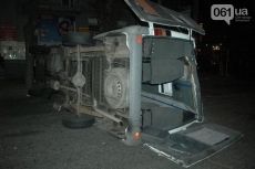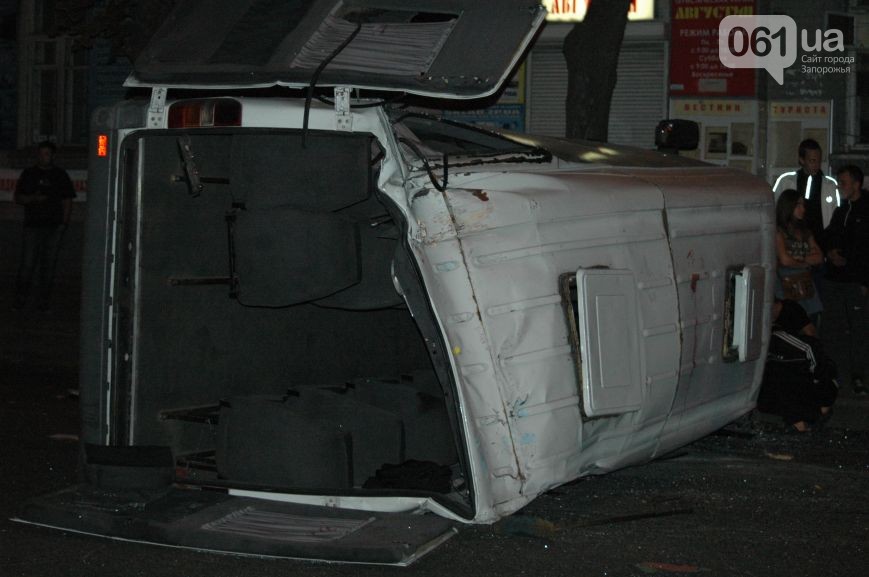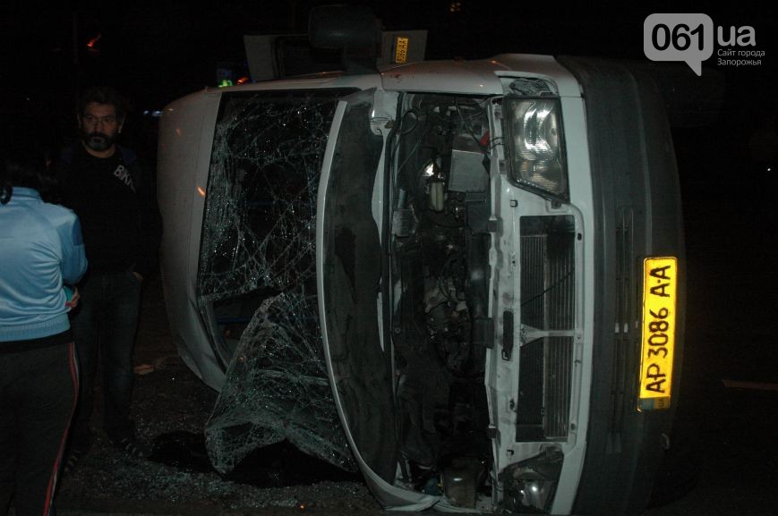 На центральном проспекте Запорожья в среду поздно вечером перевернулась маршрутка с пассажирами, по предварительным данным, пострадали порядка 7 человек.