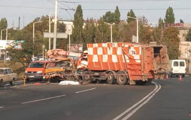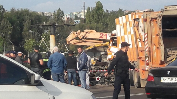 В Одессе в результате ДТП мусоровоз раздавил автовышку, есть жертвы
