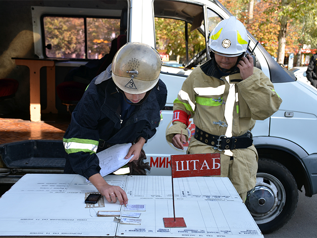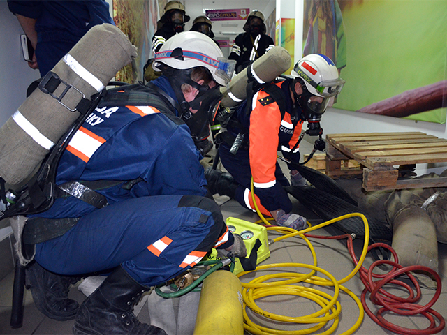 По тактическому замыслу учений, в результате короткого замыкания электропроводки кондиционера в мебельном магазине, расположенном в подвальном помещении, возник пожар. Создалась угроза распространения пламени по всей площади на смежные помещения. Автоматическая система противопожарной защиты не сработала.