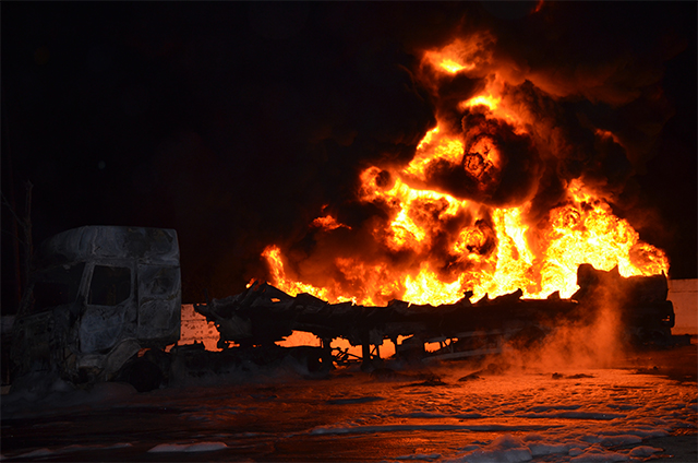 К месту сразу были направлены дежурные караулы 2-й и 4-й Государственных пожарно-спасательных частей. Когда спасатели прибыли на место, огнем было охвачено два бензовоза. Спасатели сразу приступили к тушению пожара. Из-за сложностей тушения огня был объявлен 3 номер вызова.