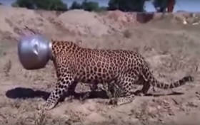 В Индии застрявший в бидоне леопард пришел за помощью к людям