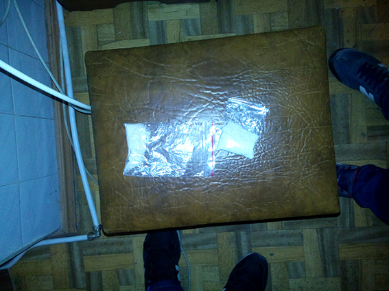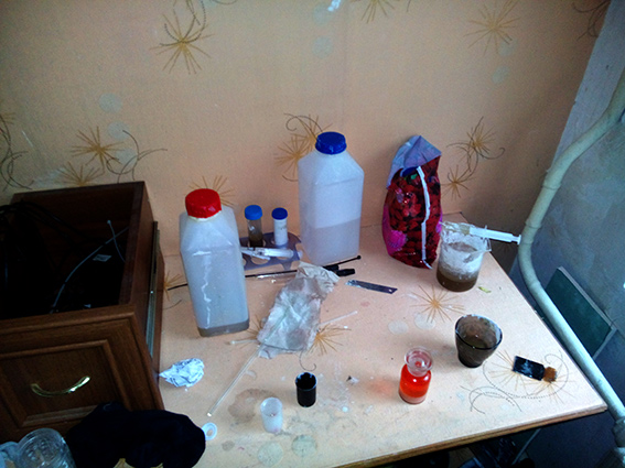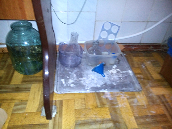 Во время личного досмотра сотрудники милиции изъяли у задержанного деньги, полученные от сбыта, а по месту его жительства выявили нарколабораторию, около 20 граммов психотропа, а также канабис, который он хранил в банках.