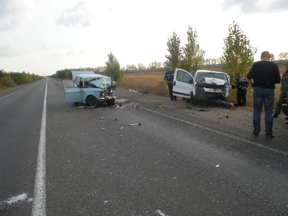 По предварительным данным, водитель автомобиля М-412, двигаясь со стороны Херсона в направлении Николаева, по неизвестным причинам выехал на полосу встречного движения, где допустил столкновение с автомобилем Peugeot Bipper, который двигался во встречном направлении.