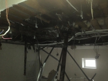 Позже один из руководителей Совета общественной безопасности Руслан Форостяк сообщил, что здание полностью залило водой из-за того, что перегорели пластиковые трубы водомагистралей.