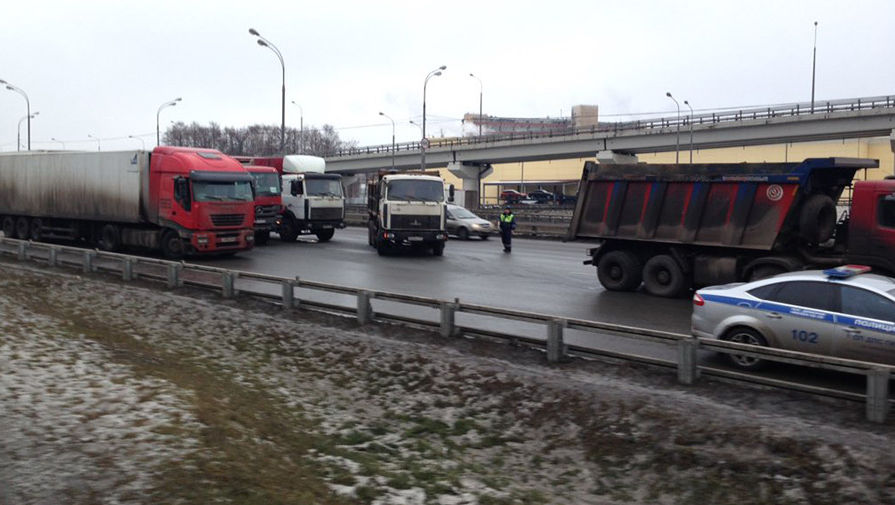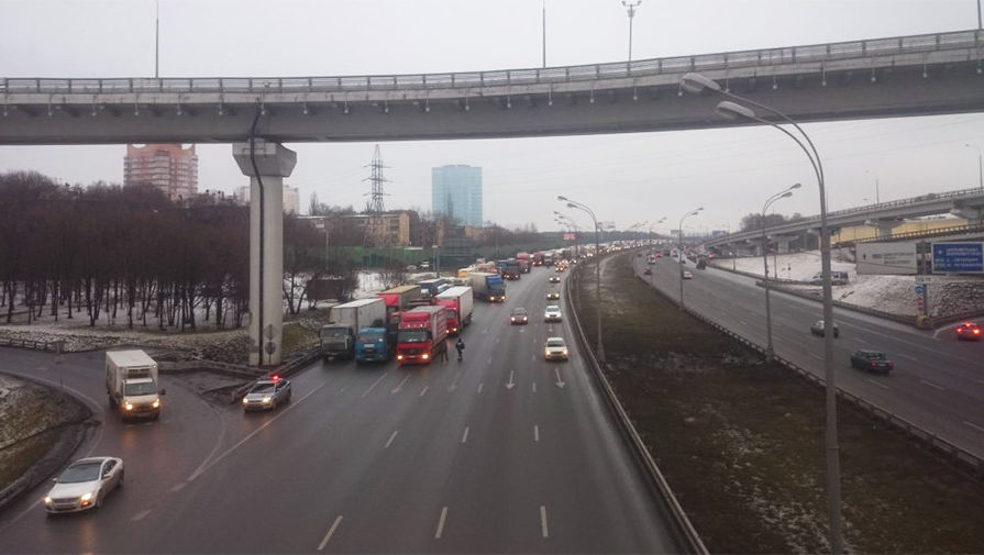В пятницу днем дальнобойщики, протестующие против внедрения системы «Платон», перекрыли движение на МКАД.