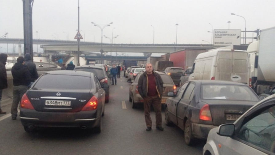 В результате на севере Москвы в районе Ленинградского шоссе образовалась огромная пробка.