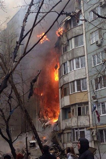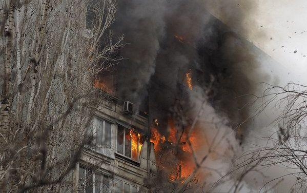 В Волгограде в жилом доме из-за двух взрывов газа начался сильный пожар и обрушились этажи