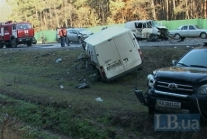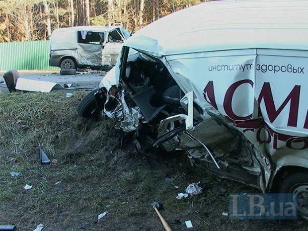 Как сообщает LB.ua, по предварительной информации, авария началась с лобового столкновения двух микроавтобусов, "Фольксваген Транспортер" и "Форд Транзит".