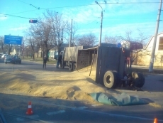 В понедельник, 28 декабря, в Николаеве перевернулся груженый зерном прицеп «КамАЗа», инцидент произошел на пересечении улиц Скороходова и Комсомольская.