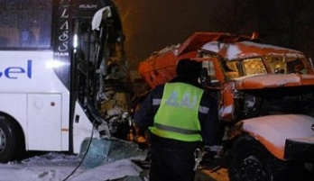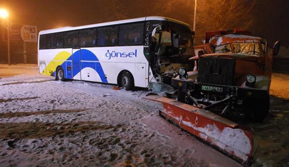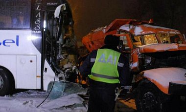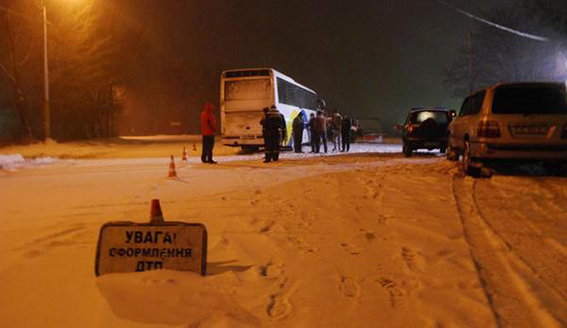 Ночью в Днепропетровской области рейсовый автобус столкнулся со снегоуборочным КрАЗом, шесть человек получили ранения.