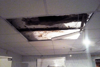 Прибыв на место происшествия и осмотрев объект, полицейские охраны обнаружили на снегу возле магазина следы от обуви, а на крыше здания проломленное отверстие.