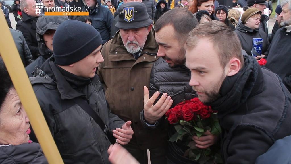На открытии памятного знака Героям Небесной Сотни в Одессе произошло столкновение.