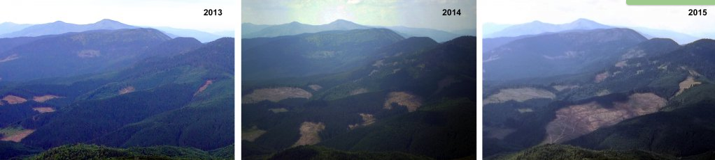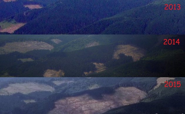 Уничтожение лесов на Закарпатье не только не приостановлено, а и происходит прежними темпами. Такой вывод можно сделать, сравнив фотографии одного и того же участка горных склонов в разные годы.