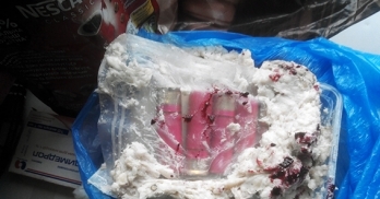 — В одном из мешков находились личные вещи, а во втором, кроме одежды и медикаментов, были и продукты питания, при проверке которых были обнаружены боеприпасы. В пластиковом судочке вместе с перемолотым салом были спрятаны 5 зарядов для миномета калибра 82 мм, в банке с вареньем были помещены 4 патрона калибра 12,7 мм, а в пачке из-под кофе находился порох, - говорится в сообщении.