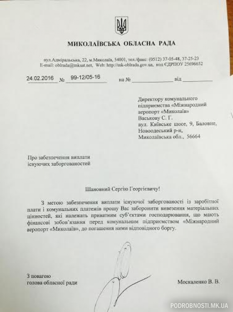 - Вполне возможно, что этот эпизод с вывозом металла из аэропорта далеко не единственный. Скорее всего, за этим беспределом стоит кто-то из чиновничьего аппарата ОГА, - прокомментировал случившееся Игорь Ивануна и напомнил о том, что 24 февраля директором КП «МАН» было получено личное распоряжение главы Николаевского облсовета Виктории Москаленко о запрете вывоза с территории предприятия каких-либо материальных ценностей.