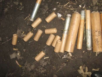 Так, в стоге сена на территории его домовладения полицейские обнаружили незарегистрированное охотничье ружье, сигнальную мину, шесть армейских дымовых шашек, семь армейских сигнальных ракет и шесть картонных взрывных устройств с зажигательным фитилем.