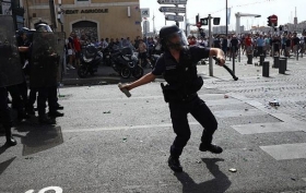 В порту Марселя состоялась стычка фанатов играющих сегодня матч третьего тура группового этапа Евро-2016 сборных Польши и Украины.