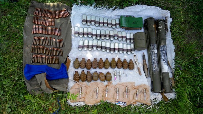 Изъяли из тайника два гранатомета РПГ-18, две противопехотные мины МОН-50 и ОЗМ-72, 36 выстрелов ВОГ-17 к автоматическому гранатомету, 16 гранат Ф-1 и РГД-5 с запалами и большое количество патронов различного калибра..
