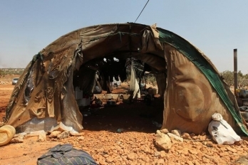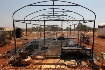 Разрушены или сожжены во время бомбардировки были палатки беженцев.
