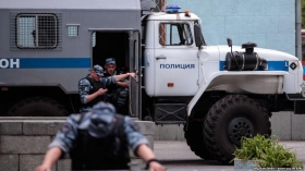 Установленные накануне российскими оккупантами в аннексированном Крыму блокпосты продолжают функционировать. Вооруженные сотрудники ОМОНа останавливают и проверяют автобусы.