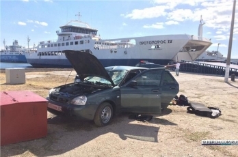Автомобиль Lada Priora упал в воду при швартовке парома Protoporos IV на Керченской морской переправе.