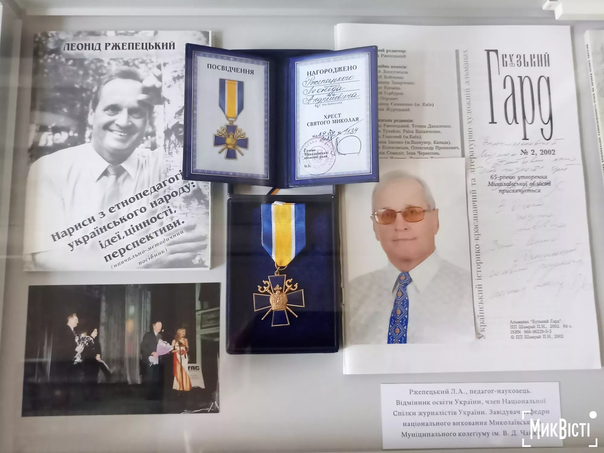 Часть выставки «Окрыленные творчеством» рассказывает о педагогах — членах «Просвиты» нового времени. Среди них — Леонид Ржепецкий, поэт, педагог-ученый, заведующий кафедрой украиноведения Николаевского муниципального коллегиума. В завершение торжественного мероприятия он прочитал свое стихотворение, посвященное Николаю Аркасу.