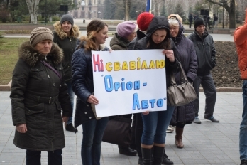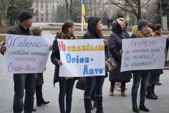 Перед общением с Валерием Буркуном пикетчики хотели, чтоб к ним вышел глава облгосадминистрации Алексей Савченко, они подготовили плакаты: «Буркун, услышь людей, когда ты наешься?», «Савченко, помоги с проблемой «Орион-Авто», «Людям не за что ездить».
