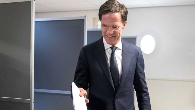 По данным опросов на выходе с избирательных участков, крупнейшей партией в будущем парламенте станет партия нынешнего премьера Марка Рютте, значительно опережающая правого популиста Герта Вилдерса.