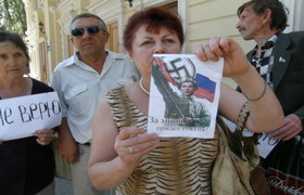 - Мы решили сюда прийти, чтобы показать свое негодование, потому что выставка устроена однобоко, она не показывает всей сути того беспредела, который мог быть, и со стороны украинцев, но они защищали свою территорию, - сказала пенсионерка Наталья Николаевна.