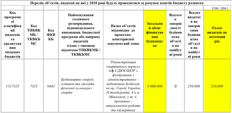 Об этом свидетельствует пообъектная роспись расходов бюджета развития Николаева на 2018 год, проект которого опубликован на официальном сайте горсовета.