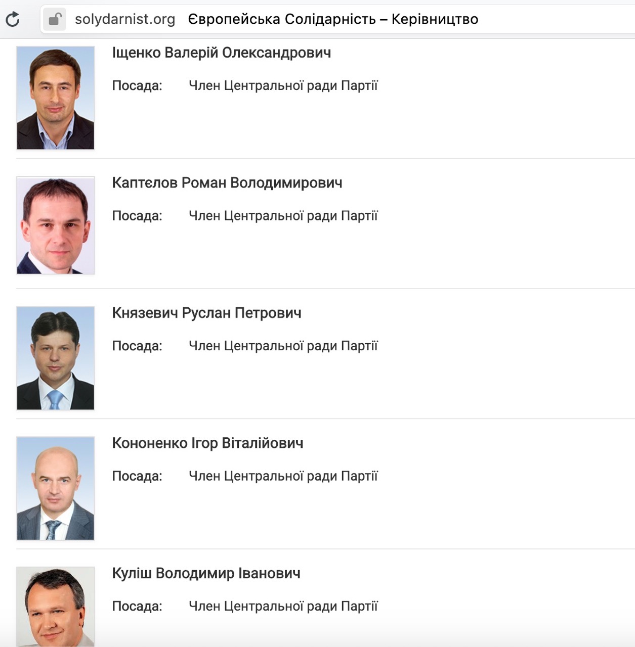 Отметим, что по данным сайта «Европейской Солидарности», в Центральный совет партии наряду с Романом Каптеловым входят также Сергей Березенко, Артур Герасимов, Олег Гладковский, Алексей Гончаренко, Игорь Кононенко, Давид Макарьян, Андрей Павелко и другие соратники экс-президента Петра Порошенко.