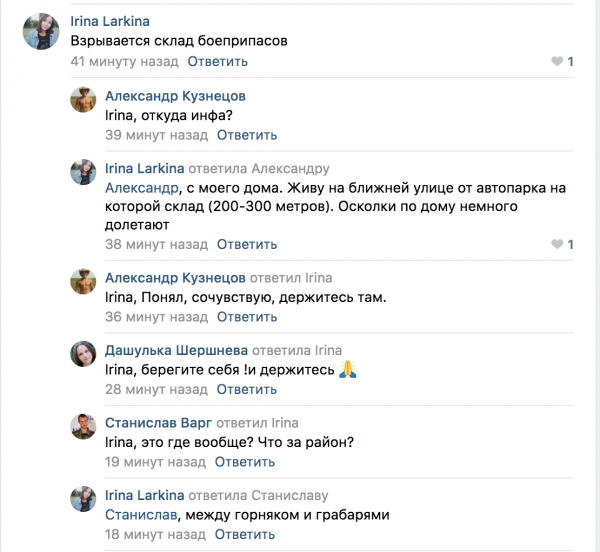 Очевидцы случившегося также выложили видео пожара и взрывов. Местные жители также активно публикуют в интернете видео пожара.