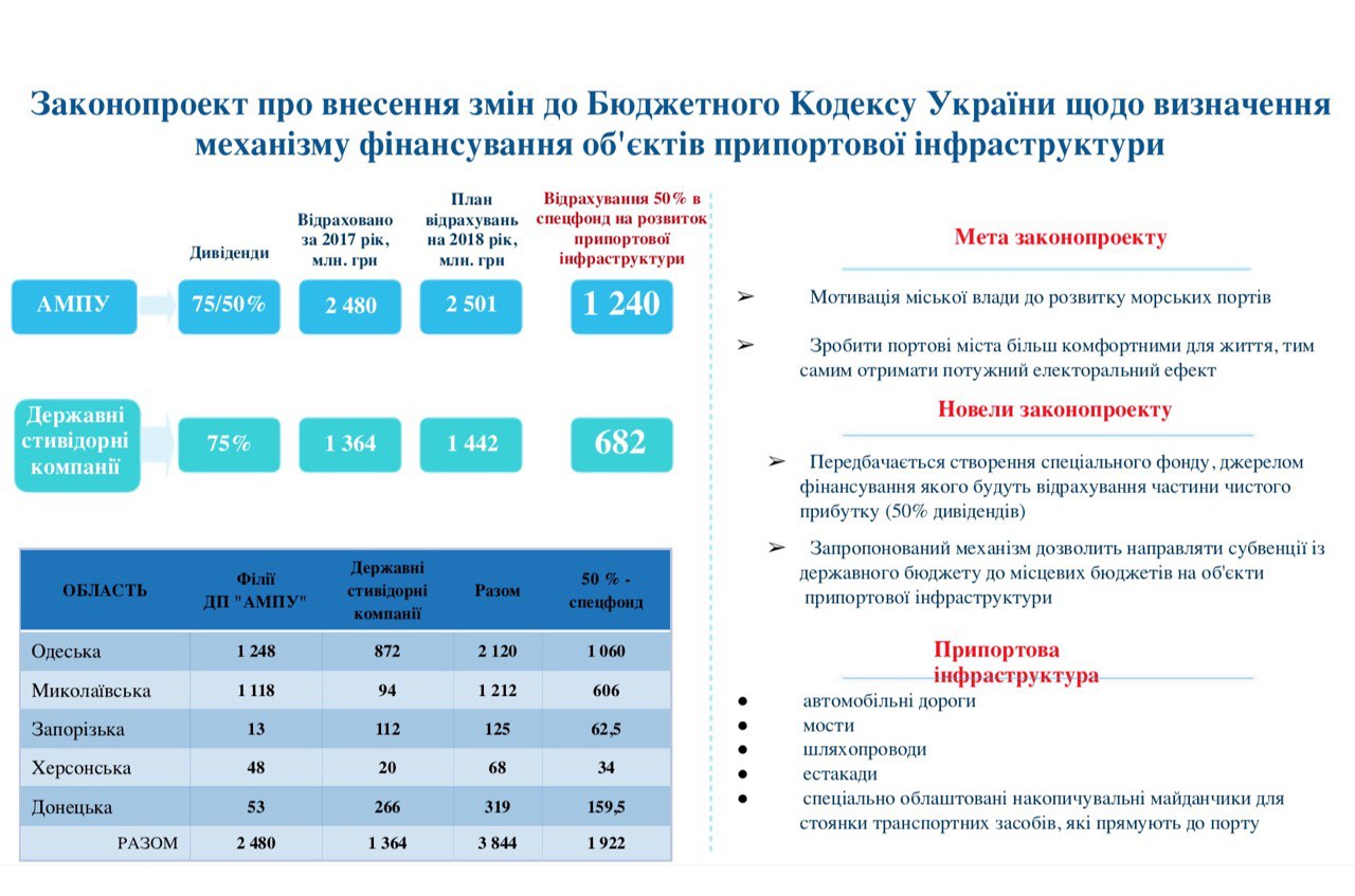 Как известно, народный депутат Борис Козырь инициировал внесение изменений в Бюджетный кодекс Украины, принятие которых позволит 50% прибили от деятельности морских портов, которые поступают от Администрации морских портов Украины в государственный бюджет, направлять на места в виде субвенции на развитие инфраструктуры припортовых городов.