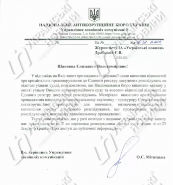 — Материалы указанного уголовного производства направлены процессуальному руководителю - прокурору Специализированной антикоррупционной прокуратуры для изучения, определения подследственности и определения органа досудебного расследования, который будет проводить досудебное расследование в указанном уголовном производства, - сказано в сообщении от НАБУ.