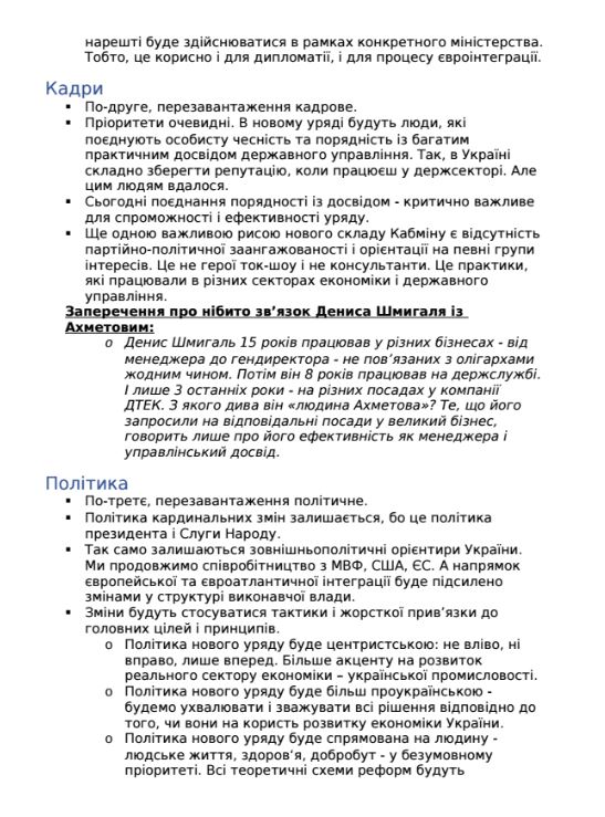 В частности, дается опровержение того, что предложенный на пост премьер-министра Денис Шмыгаль является человеком олигарха Рината Ахметова.