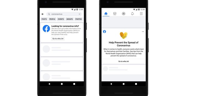 Пользователи, которые на Facebook ищут информацию о коронавирусе, начнут видеть всплывающие рекламные окна. При клике на них они перейдут на ресурсы Всемирной организации здравоохранения или местных медицинских организаций, чтобы получить свежую информацию.
