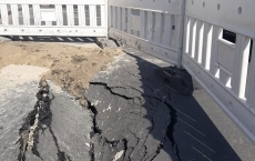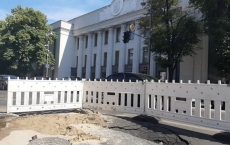 На улице Грушевского в Киеве, прямо возле здания Верховной рады, провалился асфальт. Дорожное покрытие разрушилось вследствие прорыва трубопровода под проезжей частью.