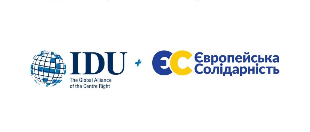 «Европейская Солидарность» подала заявку на членство IDU летом 2019 года. Согласно правилам, партия-кандидат должна получить политическую поддержку одной из партий, которая уже является членом организации. Такую поддержку обеспечила шведская партия Модератерна.