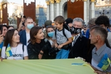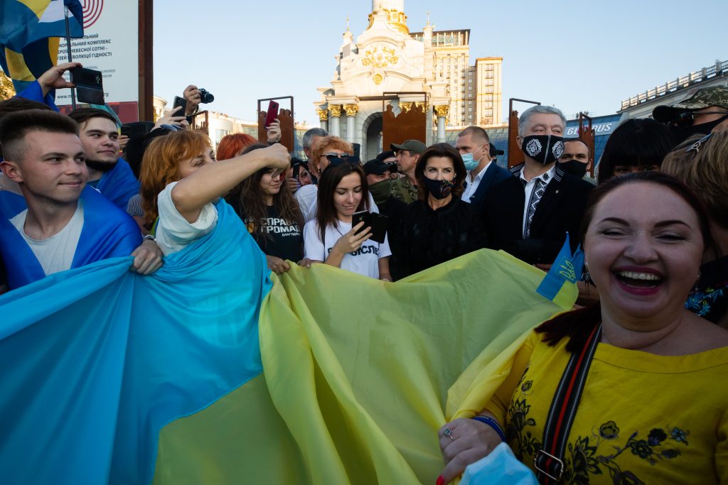 — Последние годы Флаг и Гимн получили для нас особое значение. Гимн мы поем, когда происходят очень серьезные национальные события. И чувствуем большой подъем и гордость, когда видим сине-желтый флаг, который развевается среди флагов других стран. И именно под этими цветами мы защищаем наши границы, мы строим нашу страну и воспитываем молодое поколение украинцев патриотов, — сказала Марина Порошенко.