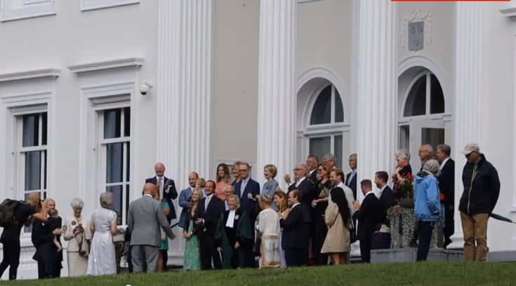 Грапперхаус женился в субботу, и на фотографиях с церемонии празднования видно, что люди стоят близко друг к другу на лестнице ратуши