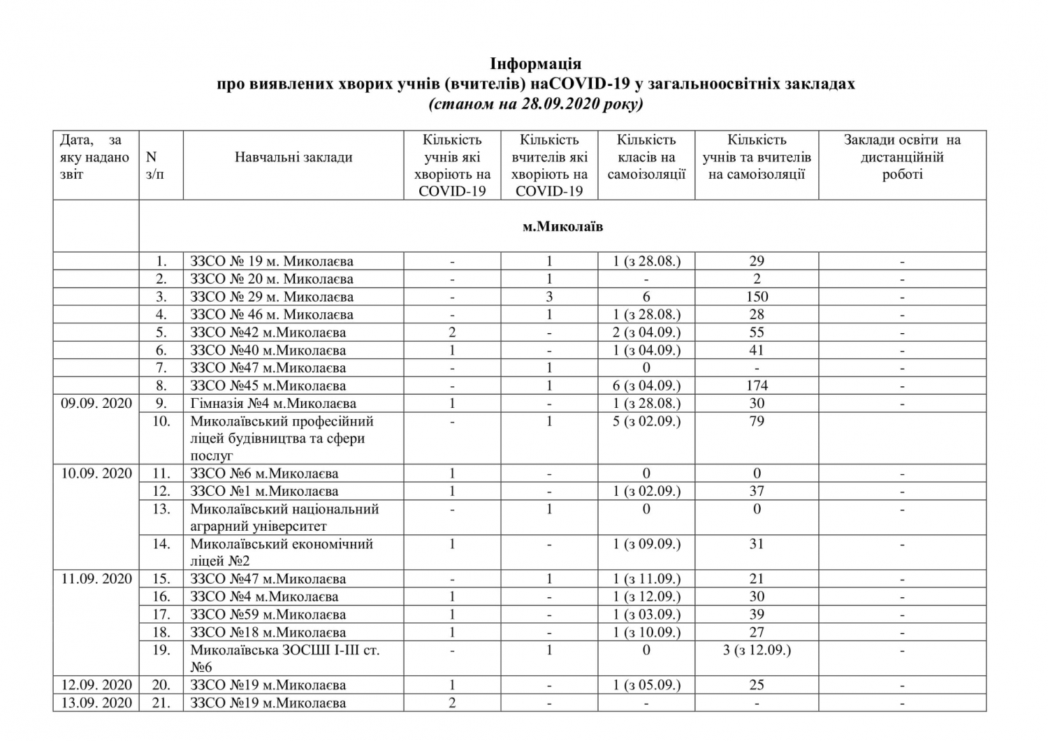 Позже стало известно, что в городе на карантин отправили еще три класса и пять учителей в двух школах. При этом, с начала нового учебного года в школах Николаева коронавирусом COVID-19 заразились 5 детей.