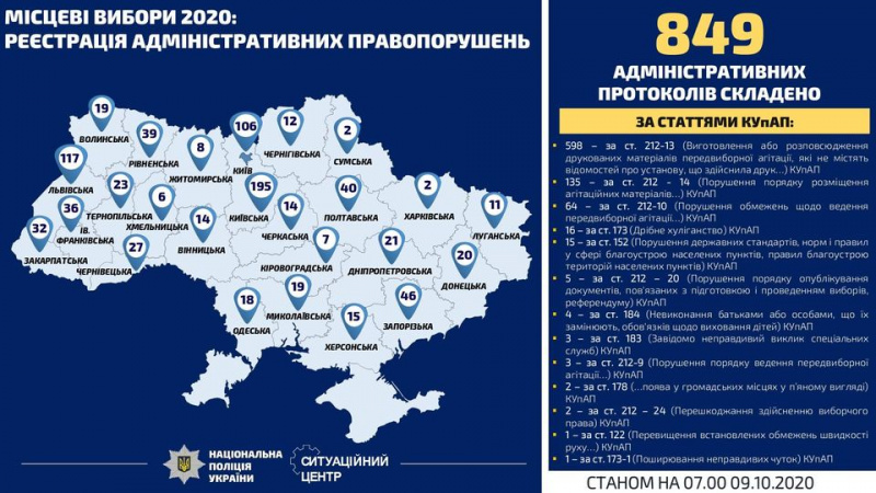 Также правоохранители составили 849 протоколов про административные правонарушения, связанных с избирательным процессом.