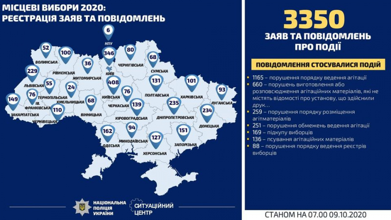 По состоянию на 9 октября полиция открыла 7 уголовных дел в связи с возможными нарушениями на местных выборах в Николаевской области.