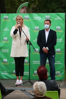Кандидаты в депутаты Николаевского горсовета от партии «Слуга Народа» и участники команды Татьяны Домбровской Наталья Подопригора и Андрей Стахурский встретились с жителями города.