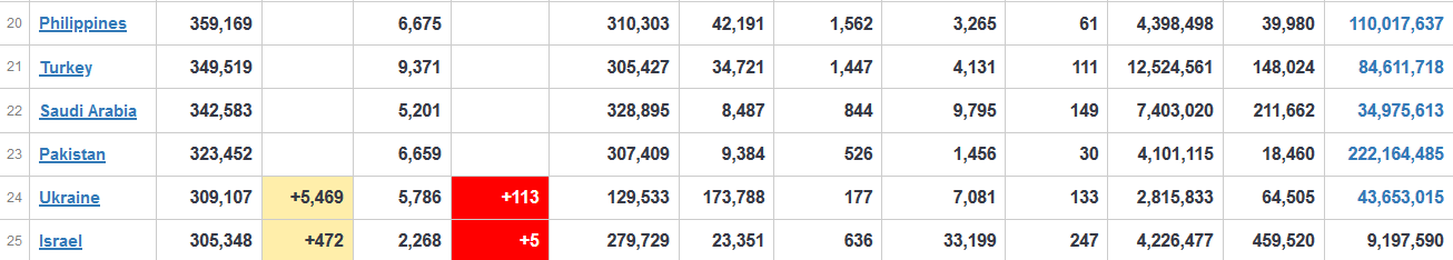 По состоянию на утро 20 октября Украина обогнала Израиль по количеству инфицированных коронавирусом с начала пандемии и вышла на 24 место в мире.