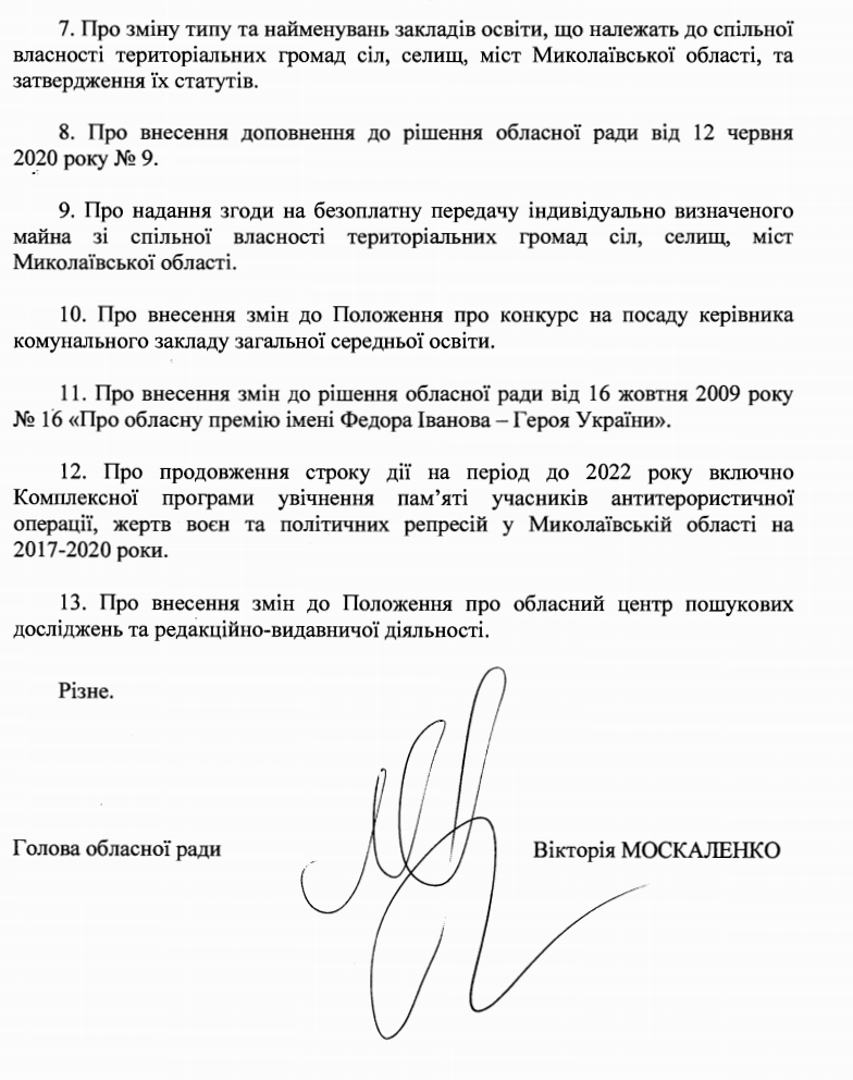 Глава Николаевского областного совета Виктория Москаленко созывает на завтра, 20 октября, заседание внеочередной сессии, чтобы отчитаться о своей работе за 5 лет.