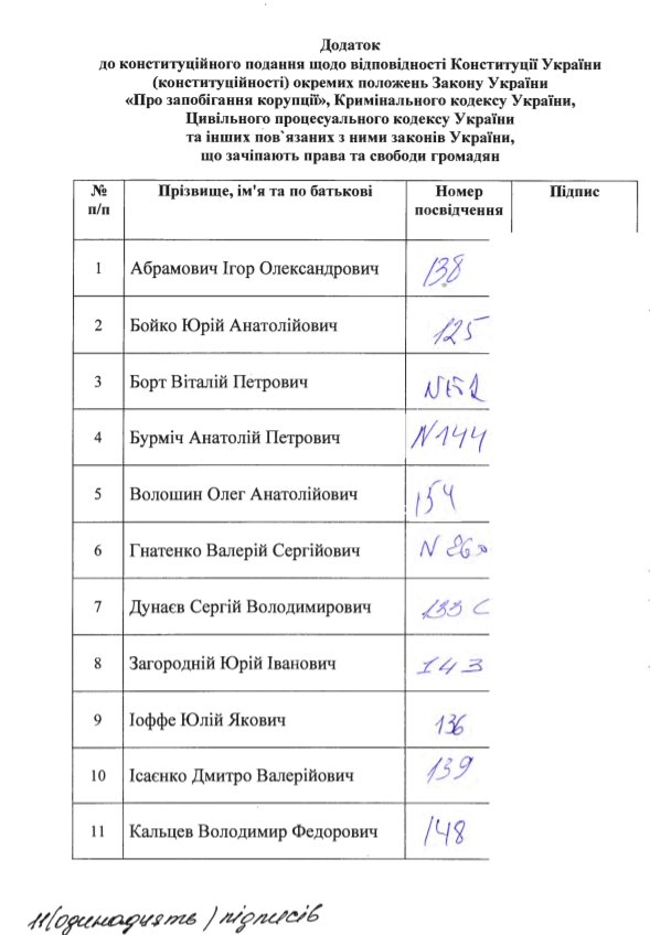 Нардепы утверждали в своем представлении, что обязанность декларировать имущество — в том числе чиновниками, депутатами и членами их семей — нарушает их базовые права, гарантированные Конституцией Украины.