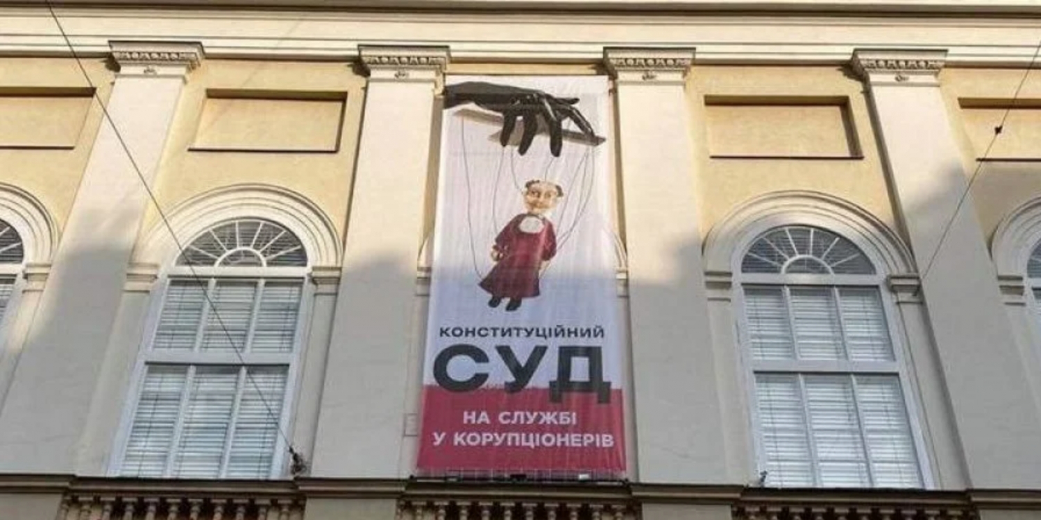 Как пишет «Новое время», на баннере написано: «Конституционный суд на службе у коррупционеров».