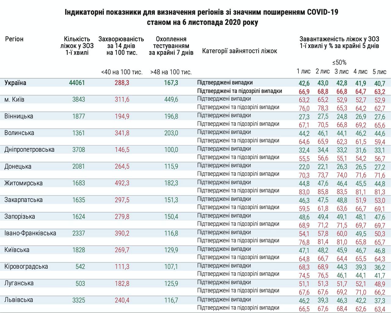 По состоянию на 6 ноября город Киев и ни одна из областей Украины не готовы к ослаблению карантина.